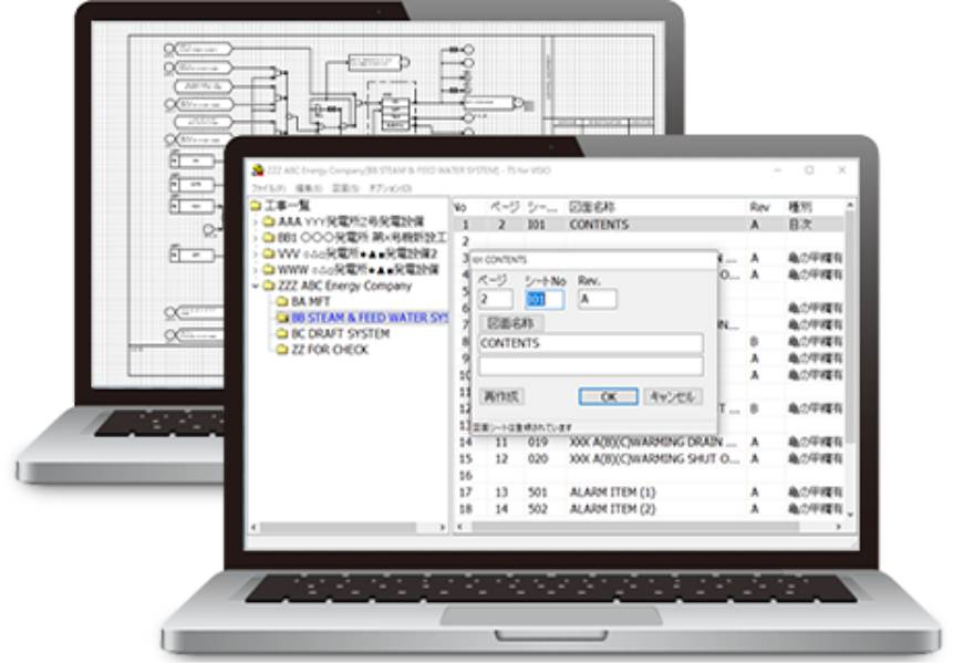 例えば、当社の代表的な製品である「TS IBD編集支援システム for Visio」では、Visioで作成したIBDシートの入出力信号をデータベース化することで、信号名称チェックが不要となり、 IBD作成の工数を大幅に削減、精度向上を図る事ができます。図面の標準化や入力ミスを削減することで現場作業をより円滑に、他プラントへの置き換えもスムーズに行えるようになります。